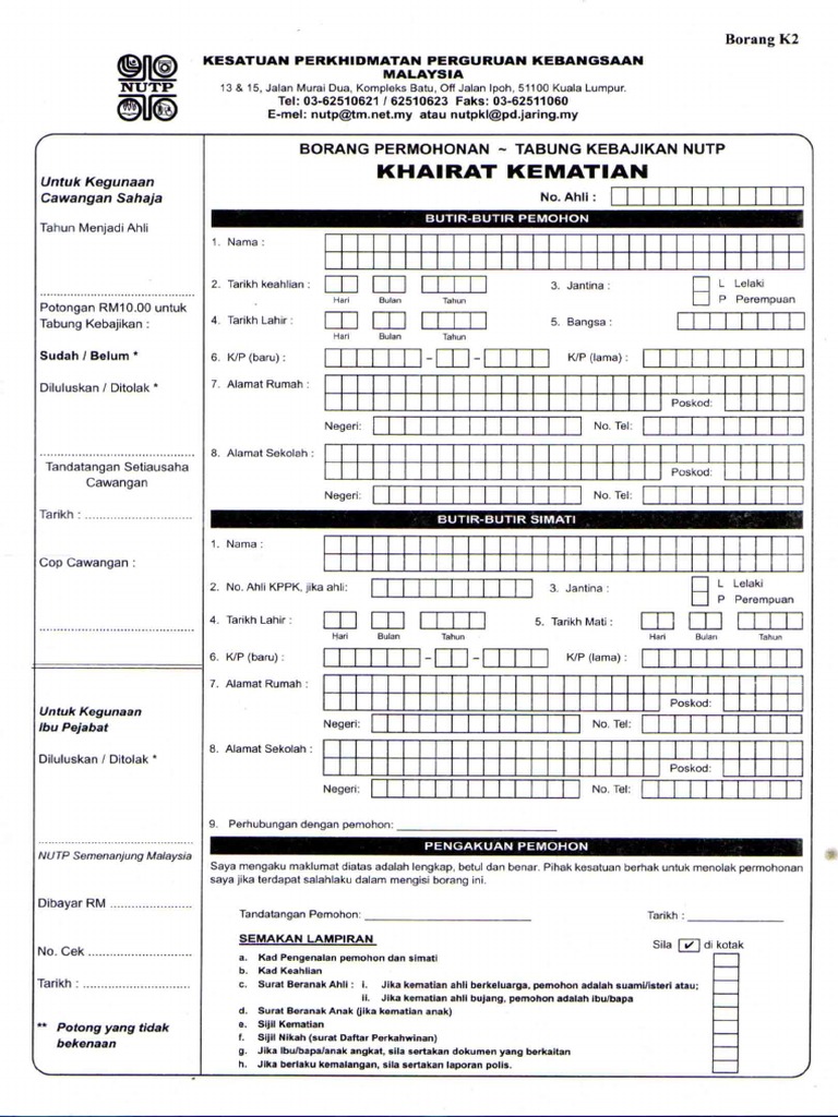 Bayaran rm 102 secara online(paypal, kad debit, kad kredit) bagi yuran sekaligus dan daftar terus. Sila klik pautan di bawah! Mulai 1 september 2018, yuran untuk keahlian dinaikan. Kopenas berhad, kuala lumpur, malaysia. Sertakan salinan (softcopy) kad pengenalan pada ruang borang yang disediakan. Sila isikan borang ini menggunakan huruf besar please complete this form in block. See more of kopenas berhad on facebook. Mengemukakan salinan borang permohonan ataupun menghubungi talian 03.7885.0530 8 majlis pimpinan tertinggi (mpt) melalui biro keahlian. February 21, 2013 at 9:29 am. Pembayaran yuran keahlian ( semester ). Disini kami sertakan borang yang perlu di isi. Download & view borang ujian lencana keahlian pengakap as pdf for free. Mengisi borang keahlian kopenas berserta salinan kad pengenalan dan 2 bulan slip gaji terbaru yang disahkan oleh majikan.