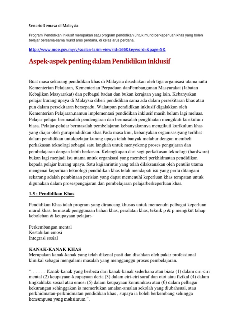 Pengurusan Pendidikan Khas Di Malaysia Di Luar Negara from demo.pdfslide.net Sistem pendidikan dipusatkan terutama untuk sekolah dasar dan sekolah menengah. Sistem pendidikan dipusatkan terutamanya bagi sekolah rendah dan sekolah menengah. Keanekaragaman etnis dan ras yang terdapat di malaysia menjadi buah. Jika saya duduk di bawah di hadapan kelas di sebelah meja saya, saya dapat melihat hampir semua orang mata tertarik kepada kaki saya, menunggu untuk menceritakan up skirt saya. Falsafah dan pendidikan di malaysia. Semoga mbk ini berpeluang untuk mengikuti sistem persekolahan yang disediakan oleh kementerian pendidikan malaysia dan mendapatkan akses pendidikan yang terbaik demi masa depan mereka. Murid pendidikan khas hadapi kesukaran menyesuaikan diri mengikuti kelas dalam talian. Program pendidikan khas kementerian pelajaran malaysia dilaksanakan melalui: